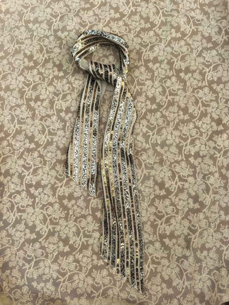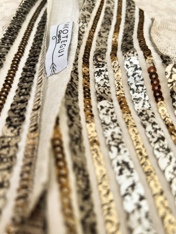 También lo podes usar como faja anudada y jugar con el como corbatín con lazo, suelto y faja para la cintura donde hace brillar la prenda que estés usando.