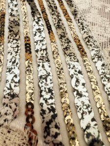 ALBA es un a corbatín de seda con lentejuelas bordadas en tonos plata con detalles en plata vieja y color dorado para simplificar el uso de este accesorio tanto para los colores cálidos y fríos,