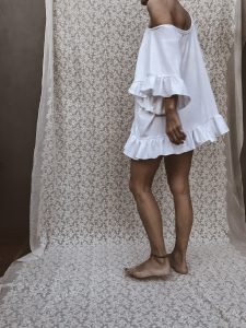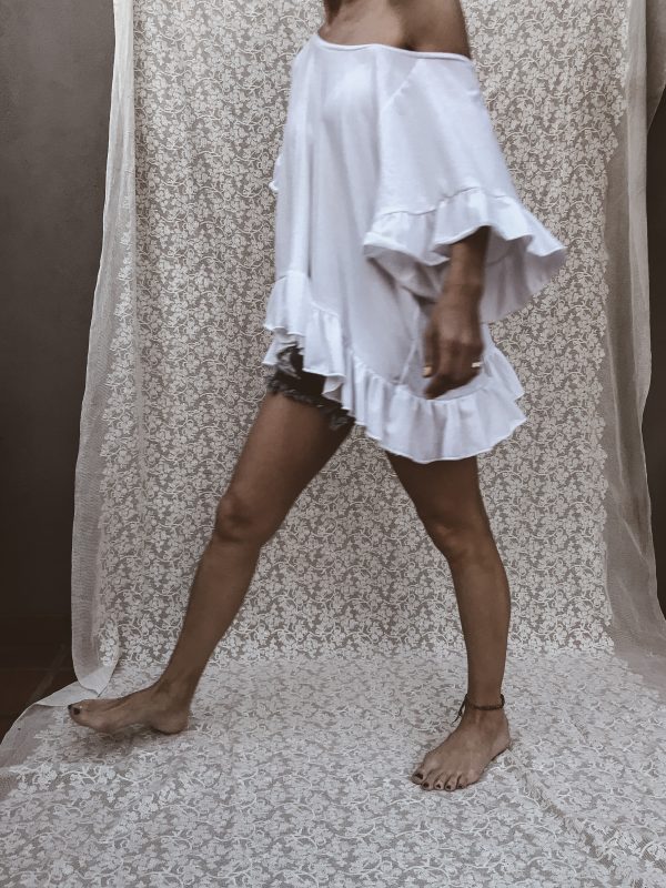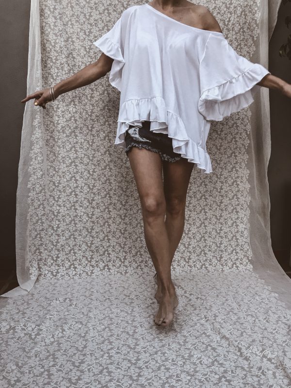 Muy cómoda y elegante el escote es bien amplio para poder jugar y caiga dejando un hombro descubierto si asi se desea.