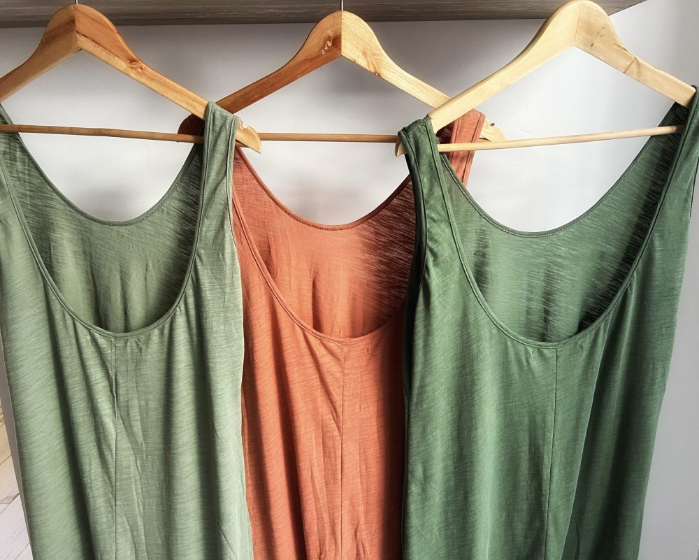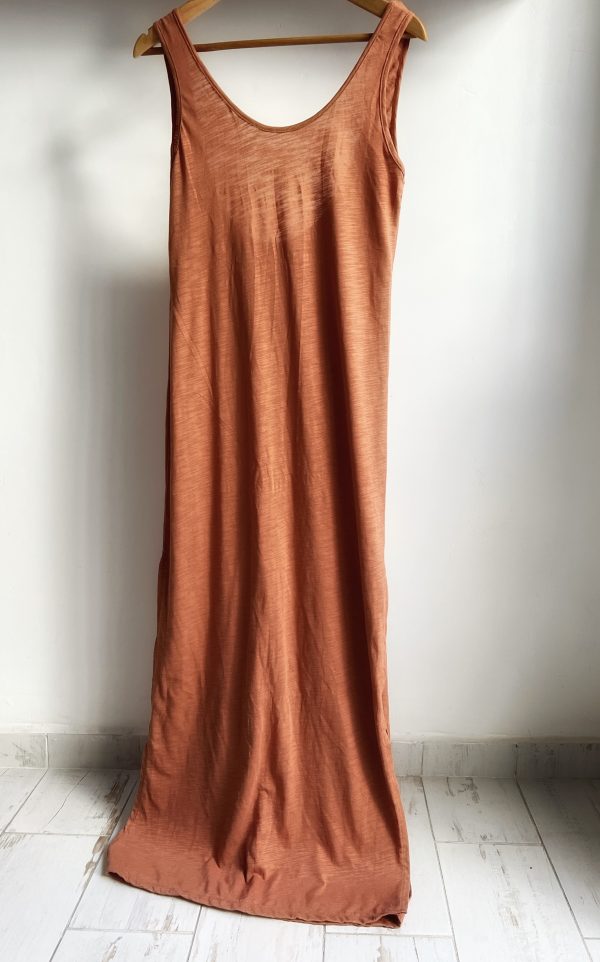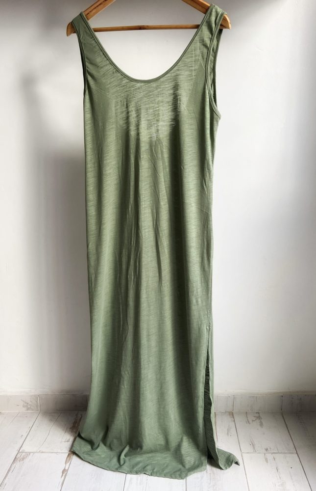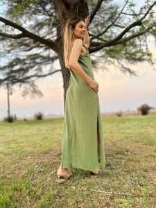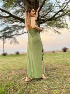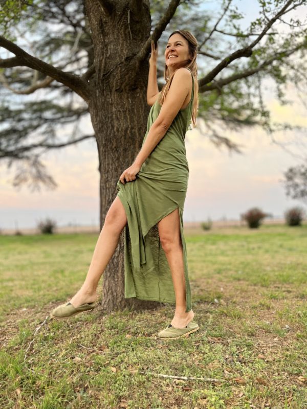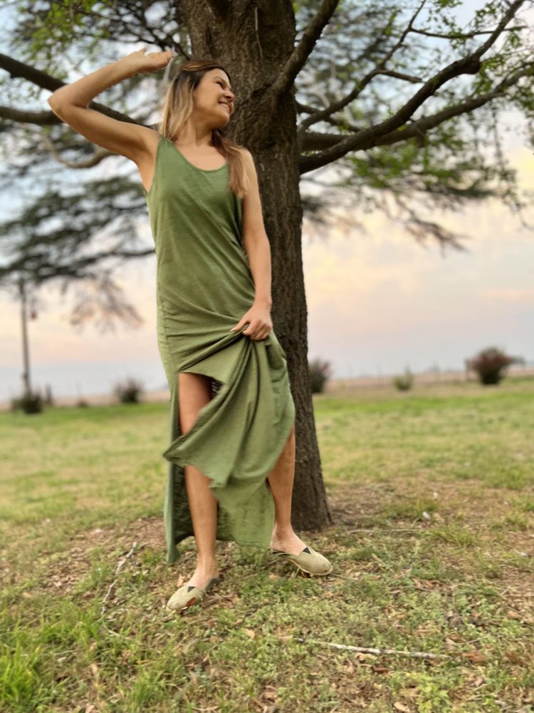 BRISA es un vestido comodín, musculosa con escote en la espalda mas profundo para esos días de calor, derecho con tajos laterales para un andar cómodo.