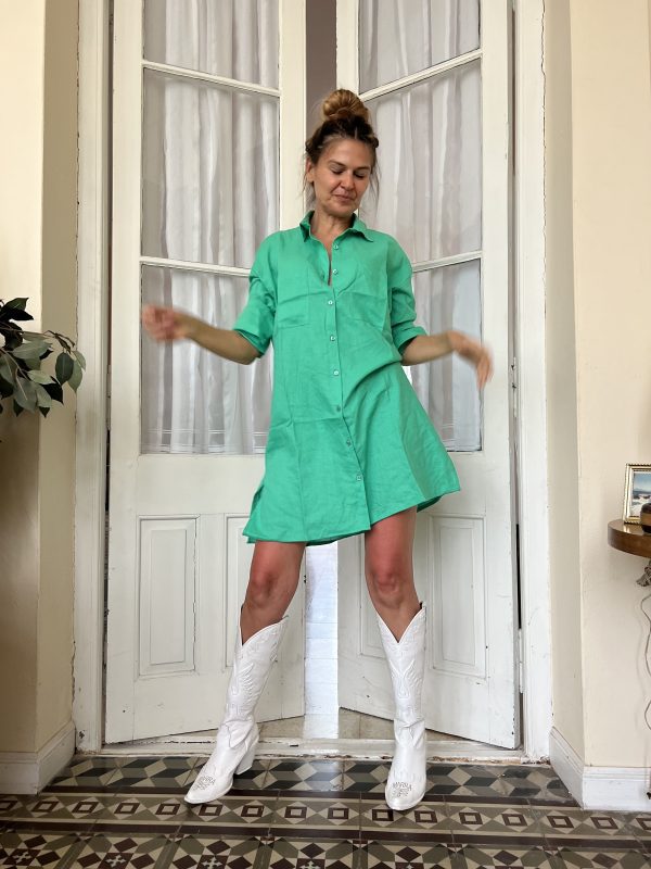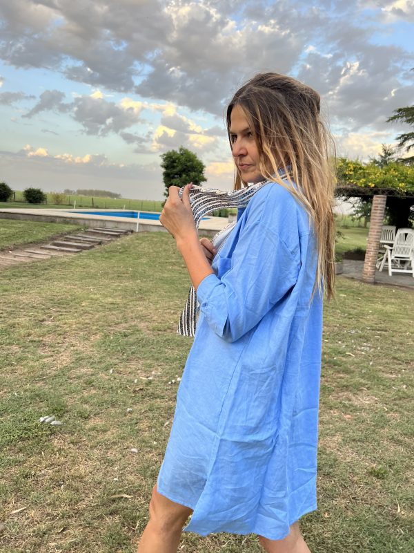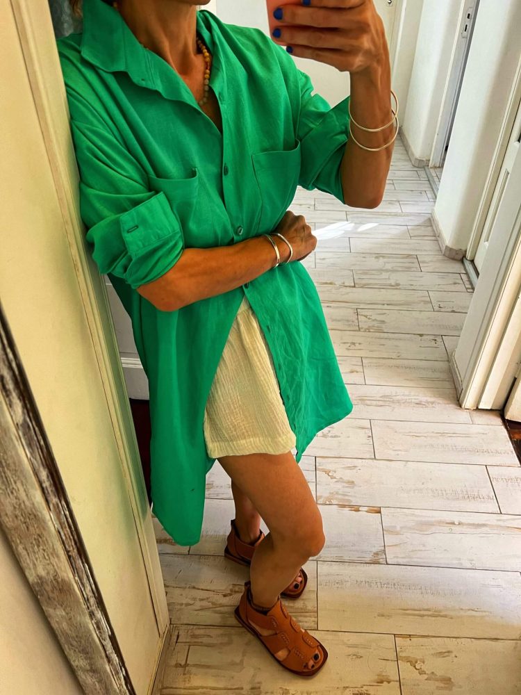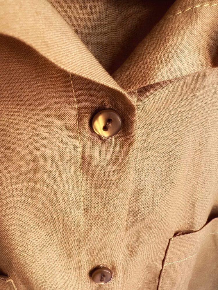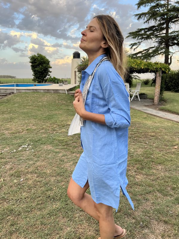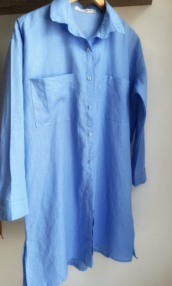 Somos amantes del lino como vos. Tiene tajos laterales para un andar cómodo corte clásico para que puedas usarla en todas la temporadas. Bolsillos sencillos grandes y cómodos en la pechera.
