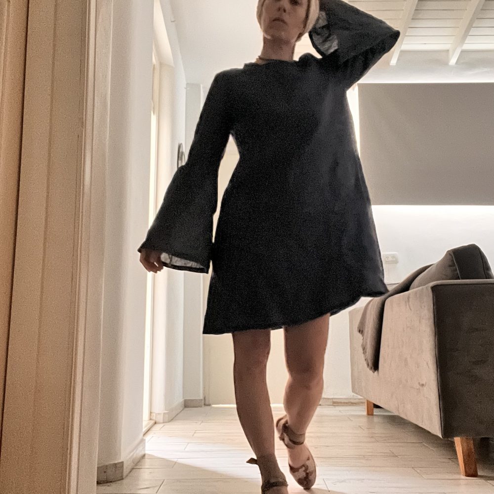 Por la espalda y busto es mas al cuerpo sin llegar ajustar luego se amplía hasta el largo total