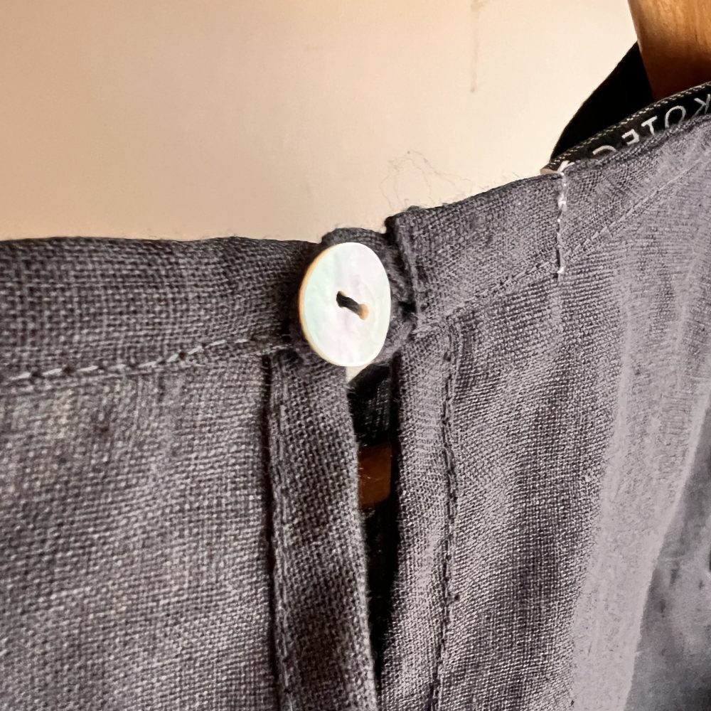 Abertura en la espalda pequeña con ojal del mismo género y boton de nacar